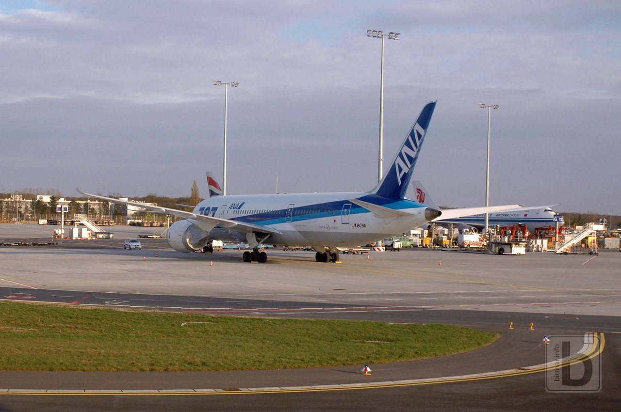 Čekáme minimálně, témeř plynule se přesouváme do autobusu a následně do letadla Airbus A319 Českých Aerolinií. Pojíždění na start je zajímavé, objíždíme po pojížděčkách více než půl Frankfurtského letiště, kde je u carga k vidění odstavený japonský Boening B787 společnosti ANA. Všechny Dreamlinery jsou t.č. totiž uzemněny různě po světě.