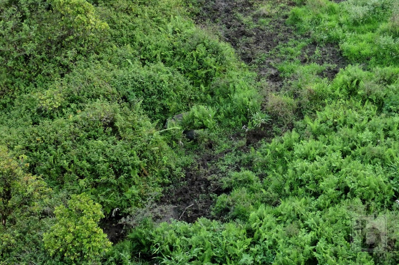 Nastává zajímavá situace, nějaké bílé ptáky jsem viděl, ale nepřikládal jsem tomu význam. Naopak pro pilota to byla jak červená pro býka, začínáme zpomalovat a zatáčkou klesat. Chvíli hledá a opravdu nachází rodinku divočáků. Kdo je nevidí ani po zvýraznění, nechť si klikne na větší rozlišení. Aktuální výška nad terénem je neveřejná informace :)