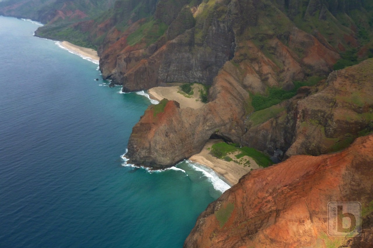 Od shora: Kalalau Valley, Kallau Beach, Honopu Beach. Konečně pořádně vidím jaký "vztah" mezi plážemi je. Kdo viděl na vlnách podivna (4. díl Pirátů z Karibiku), tak musí hned poznat místo, kde byla "zaparkovaná" loď, když Johnny Depp hledal kalichy.