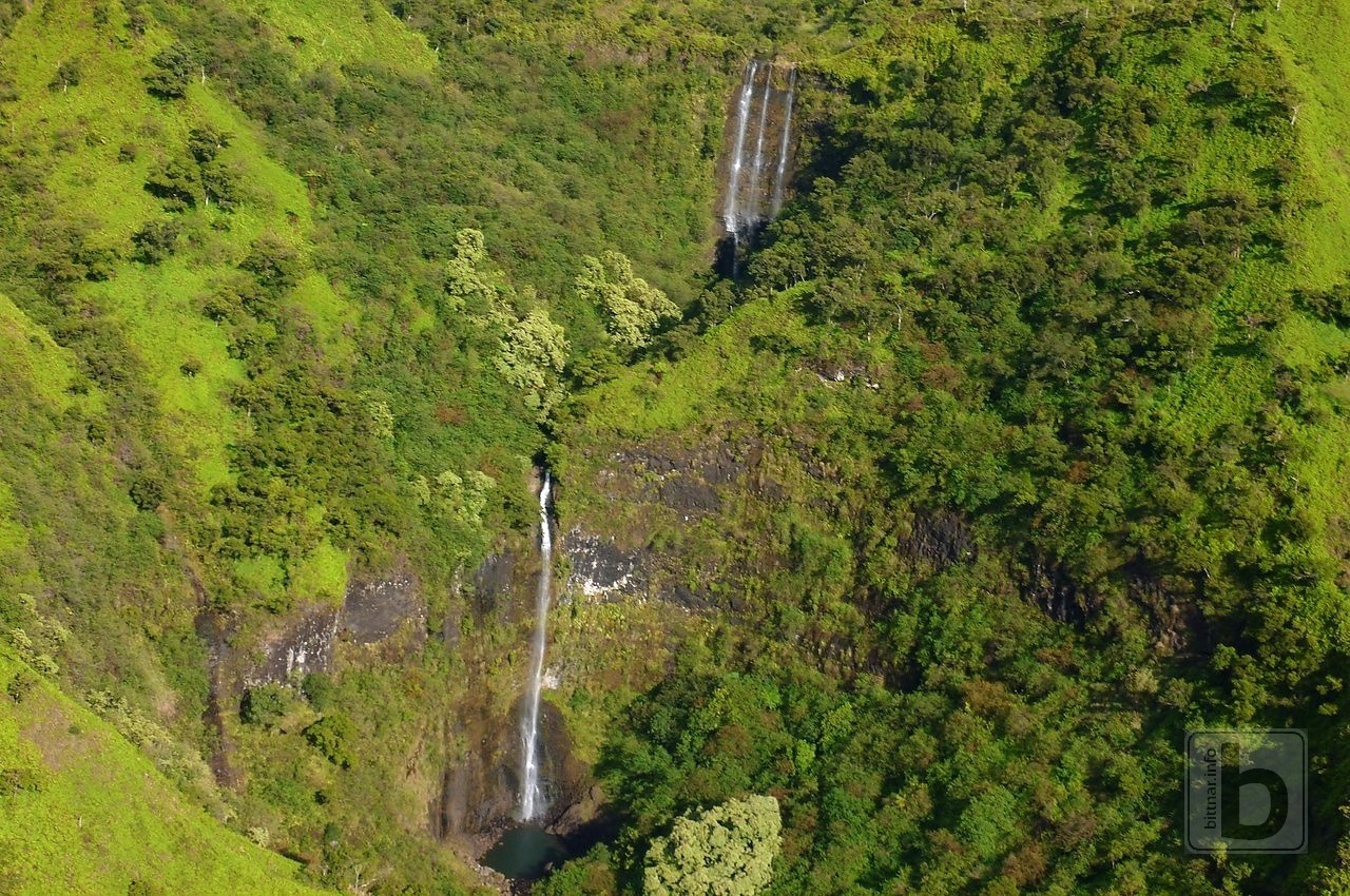 Jedno z prvních míst, které nám "ukazuje" (pozn.: to znamená, že tam buď visíme, otáčíme nebo kroužíme) jsou vodopády. Ptám se zda to je Jurassic Waterfall. Prý ne, ale ukáže nám ho také. Každopádně toto vše, a i to předtím (defacto od startu), je všechno "private property, Robinson family". Jsou to ti dva bráchové Robinson, kteří vlastní vedlejší, civilizací nedotknutelný, ostrov Nihau s původními obyvateli? Ano jsou..